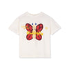 可愛い笑顔の大きな蝶々のプリントTシャツ。