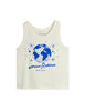 地球を星たちがプリントされたタンクトップ。オーガニックコットン100%を使用した柔らかい生地です。GOTSオーガニック基準を満たしています。